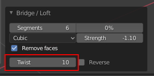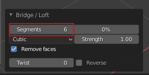 중간에 생성된 면에 대한 옵션입니다. 기본값 Segments : 1