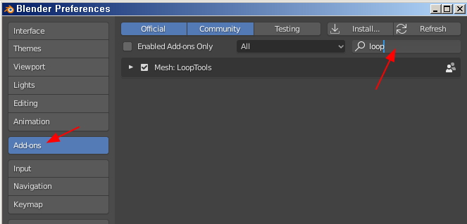 루프 툴은 블렌더가 가지고 있지만, 미실행 상태입니다.