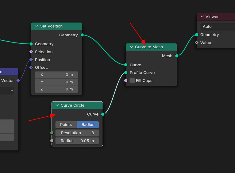두께가 있는 밧줄 같은 ... 프로파일을 받기 위해서 Curve to Mesh 노드를 연결하고, Curve Circle을 프로파일로 받습니다.