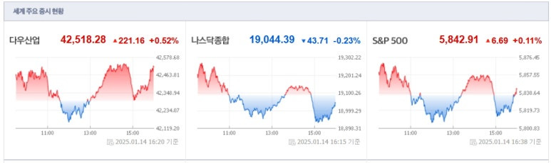 2025년1월14일(화) 미국증시 마감요약
