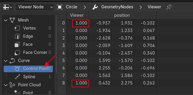SpreadSheet에서 Control Point의 Viewer에 1 로서 확인할수 있습니다.