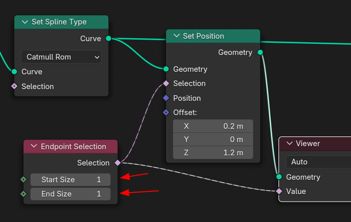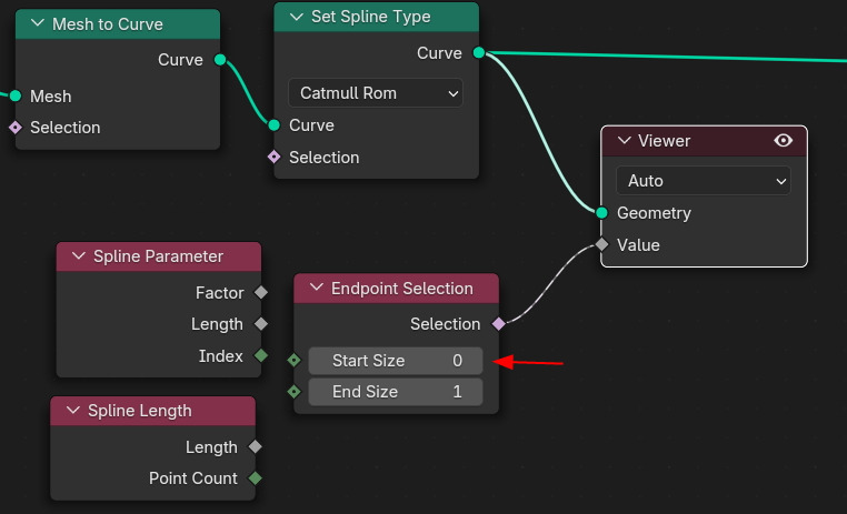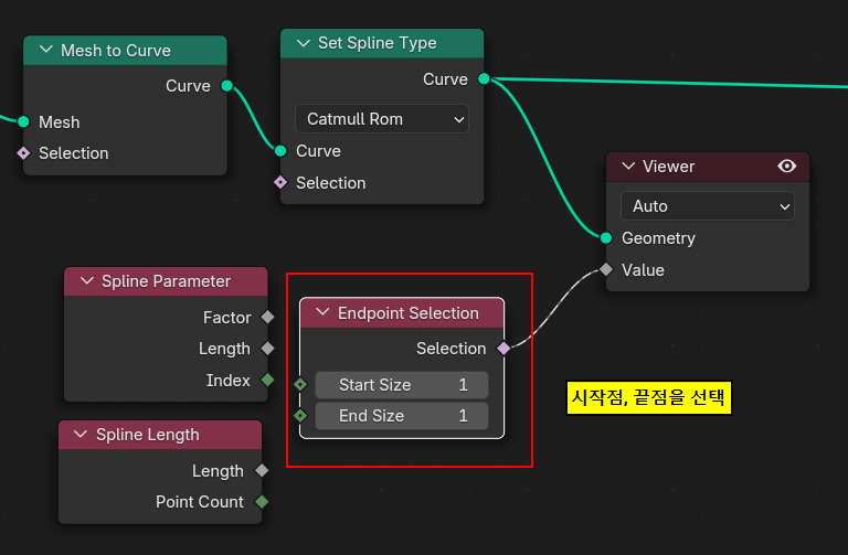 Endpoint Selection 노드는 시작점, 끝점을 선택할수 있습니다.
