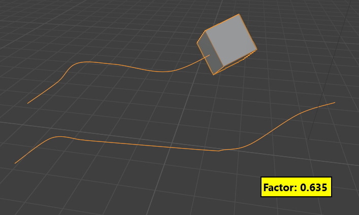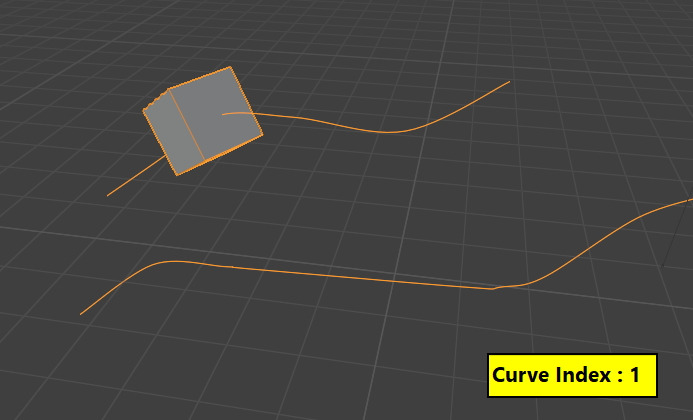 이때, Curve Index를 사용해서, 0번 Curve, 1번 Curve로 Cube가 위치할 Path를 선택할 수 있습니다.