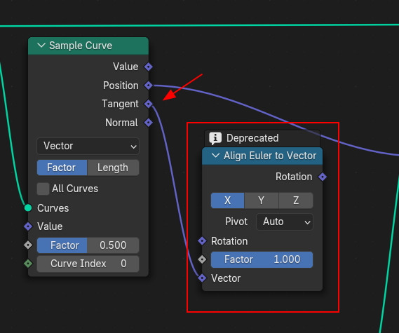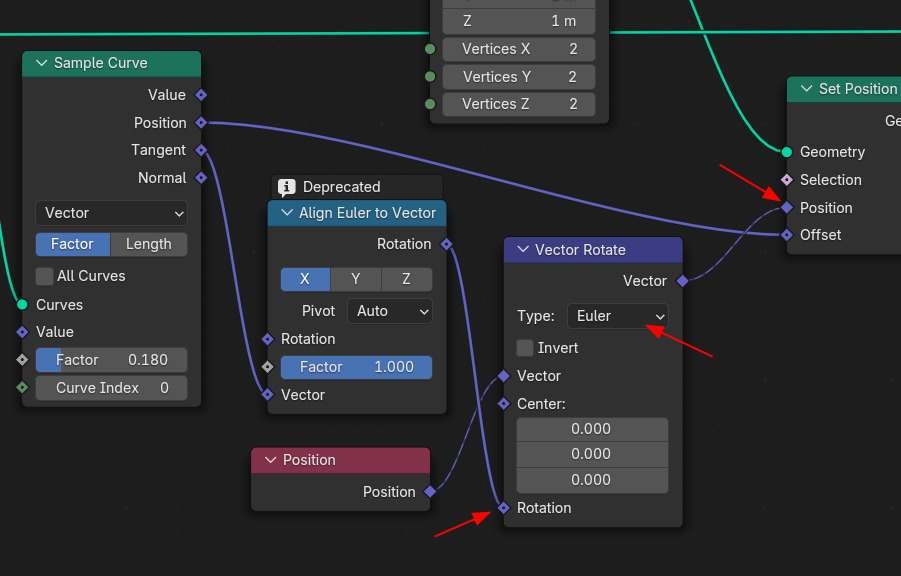 그리고, Vector Rotate의 Rotation에 Align Euler to Vector의 Rotation의 값을 연결하고,