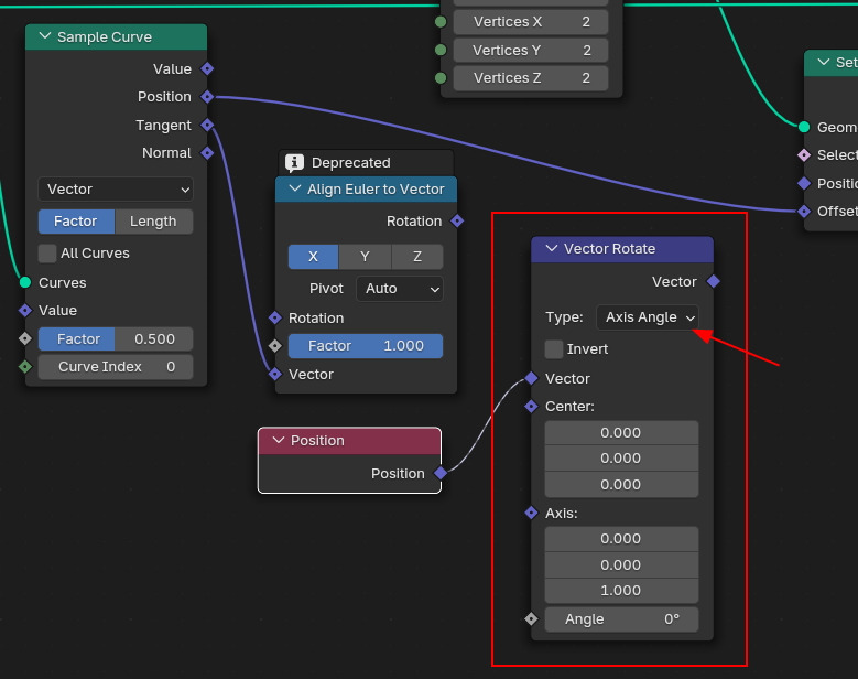 (Vector Rotate의 Type을 Axis Angle에서 Euler로 변경합니다.