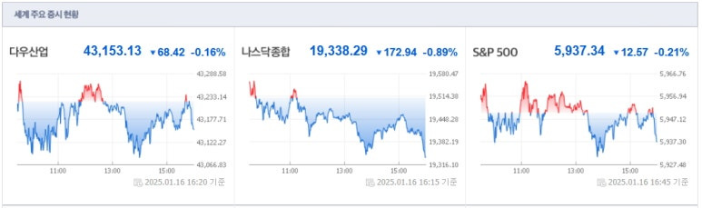 2025년1월16일(목) 미국증시 마감요약