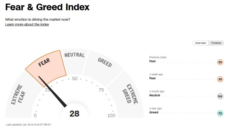 미국 증시 공포 탐욕 지수 (Greed and Fear Index): 28