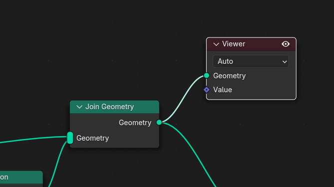 Spline과 Cube의 움직임을 합친것인 Join Geometry 의 결과를 Viewr를 연결해서 보면,