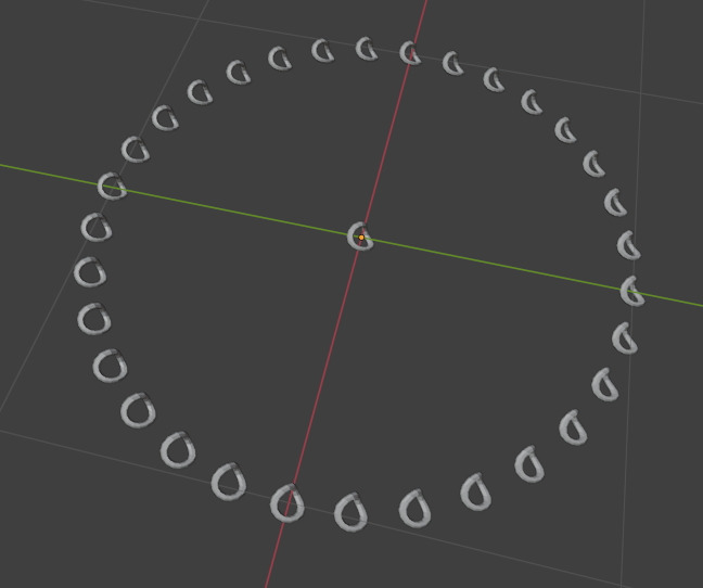 이렇게 Circle 모양에 Instance on Point(Mesh Circle 의 Vertex) 의 위치에 배치 됩니다.