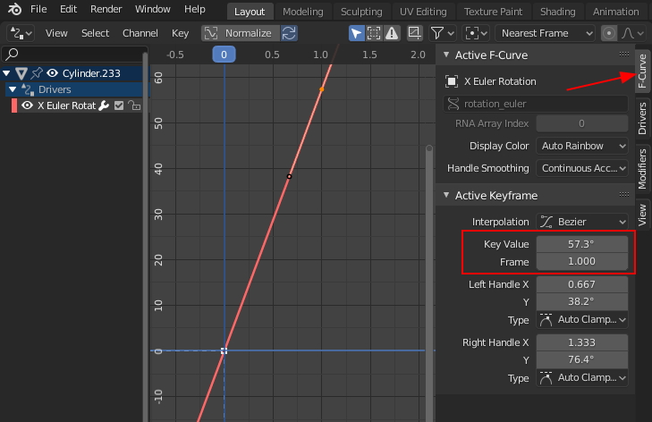 Key Value의 화살표를 살살 클릭하며, 원하는 각도로 만들어 줍니다.