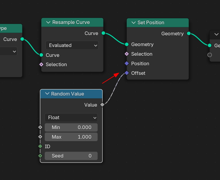 Set Position 노드로 Geometry 인풋으로 연결합니다.