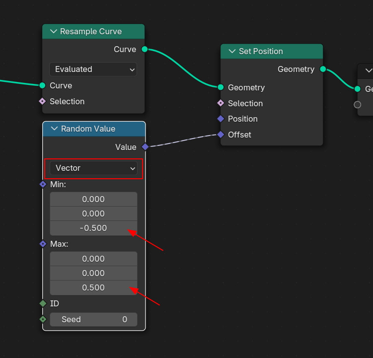 그런데, Evaluated를 선택하고, Random Value 의 결과값을 Set Position의 Offset으로 연결을 하면,