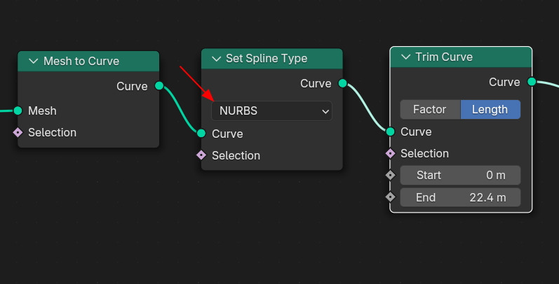 Trim Curve 앞에 Set Spline Type을 추가하고, Cutmull Rom을 선택하면,