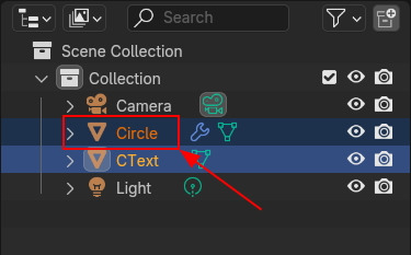 Mesh로 구성된 Circle과 Text를 준비하고,