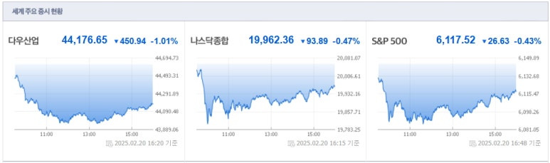2025년2월20일(목) 미국증시 마감요약
