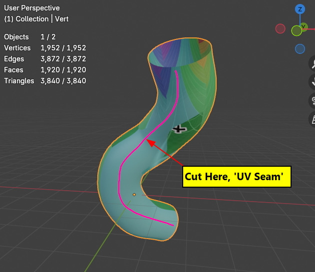 이렇게 세로 방향으로 UV Seam 처럼 잘라야 하겠습니다. 다음 게시물에는 이렇게 하기 위해서는 특정 지점을 찾는 방법에 대해 알아보겠습니다.