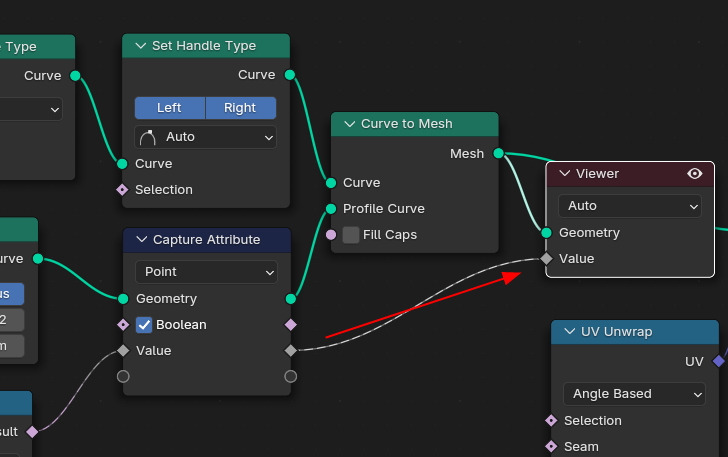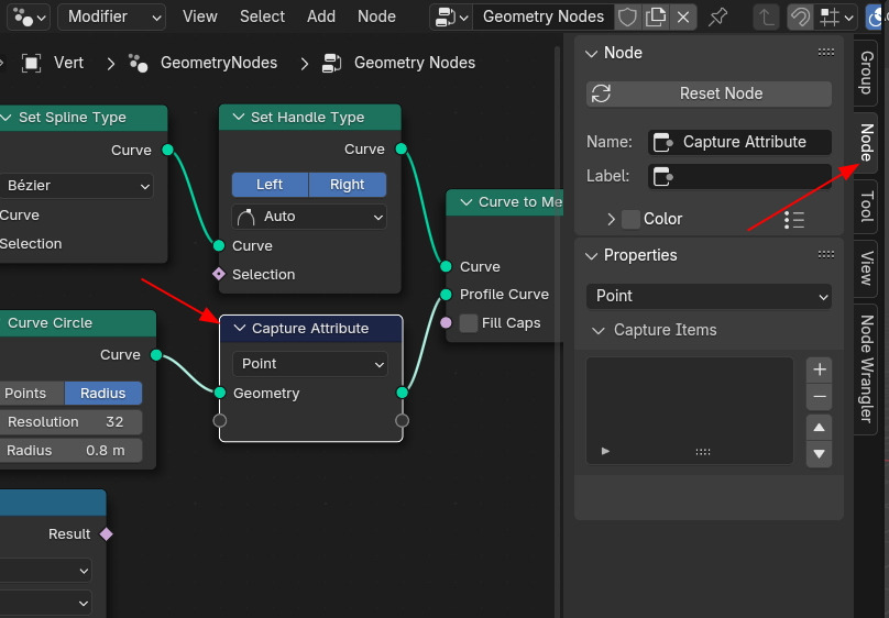 그리고, Curve Circle을 Profile로 가기전에 캡쳐를 합니다. Capture Attribute노드로 캡쳐를 하고,