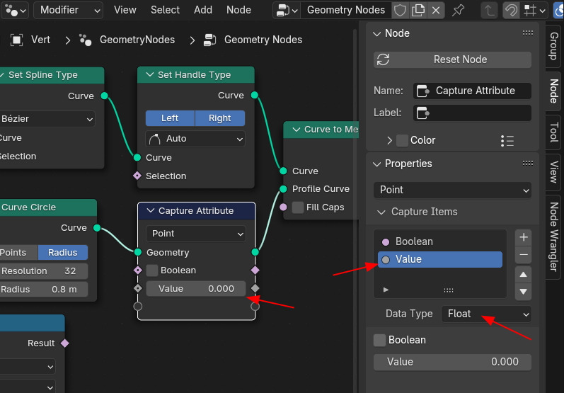Capture Attribute 노드를 편집, 소켓을 추가 합니다.