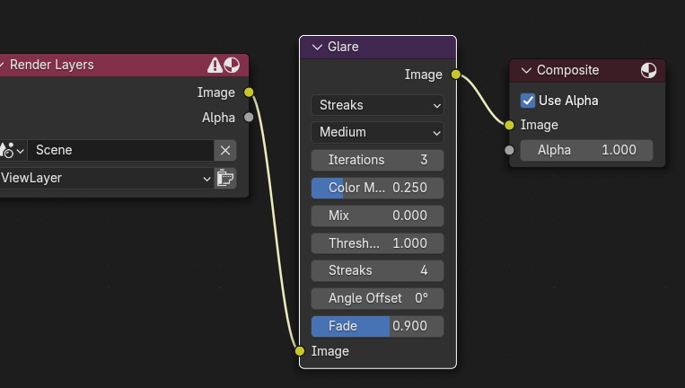 Composite 앞에 Glare 노드를 삽입합니다.