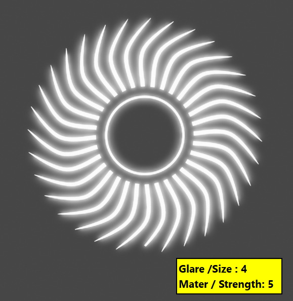 Glare - Size와 Material - Strength로 크기와 강도를 조절합니다.