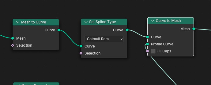그리고, Mesh to Curve 노드를 생성해서, Curve로 전환합니다.
