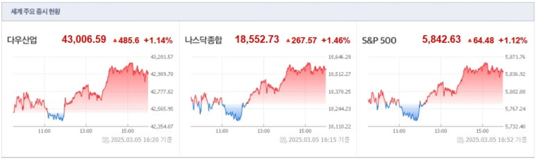 트럼프 대통령이 멕시코와 캐나다에 대한 자동차 관세를 1개월간 유예하기로 했따는 소식에 힘이비어 증시가 반등.(장난하나....)