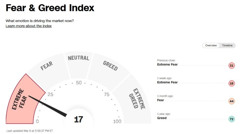 미국 증시 공포 탐욕 지수 (Greed and Fear Index): 17