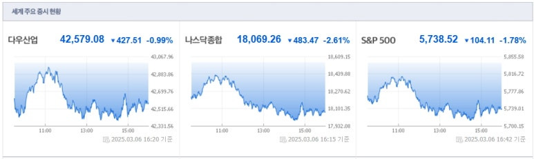 2025년3월6일(목) 미국증시 마감요약