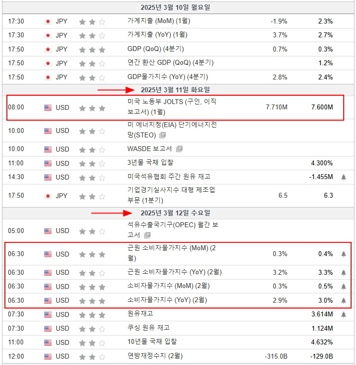 2025년3월10일~14일 미국증시 이벤트