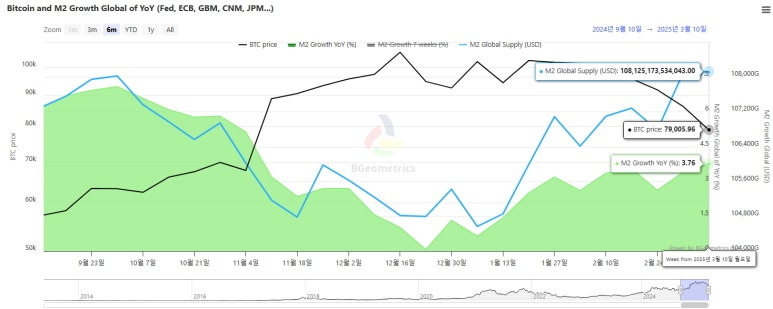 이것은 저번주 글로벌 M2 통화량. 이번주 것을 살짝 수정한듯한....