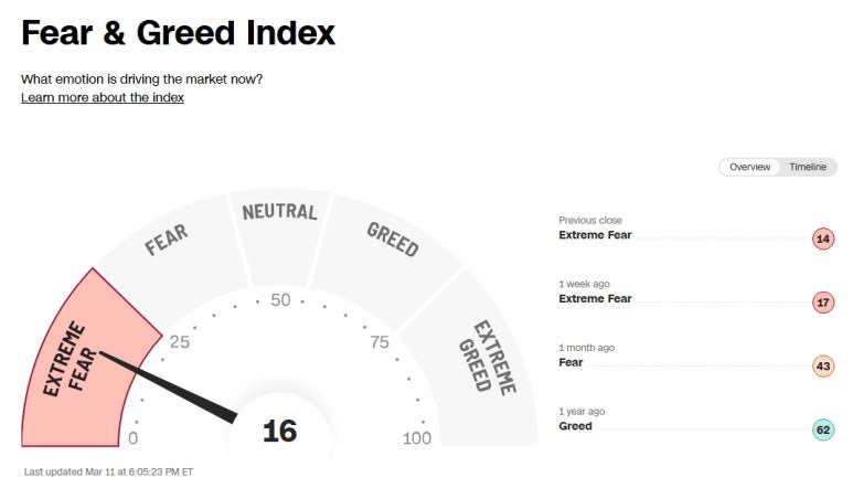 미국 증시 공포 탐욕 지수 (Greed and Fear Index): 16