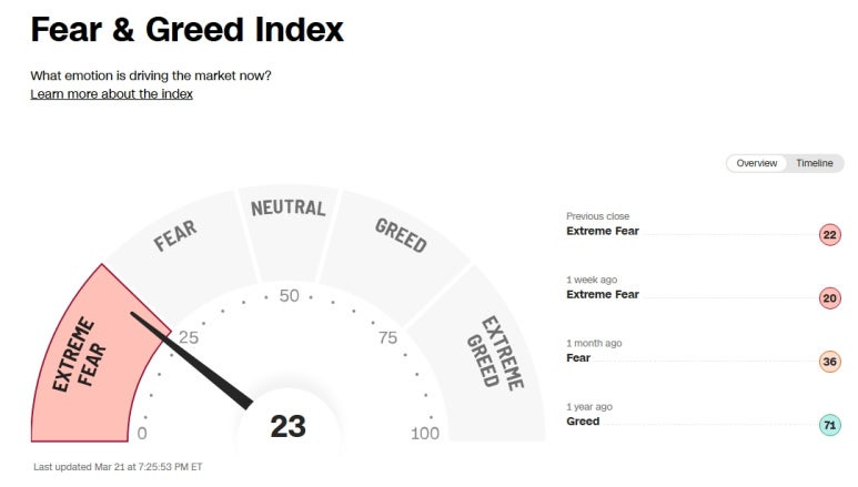 미국 증시 공포 탐욕 지수 (Greed and Fear Index): 23