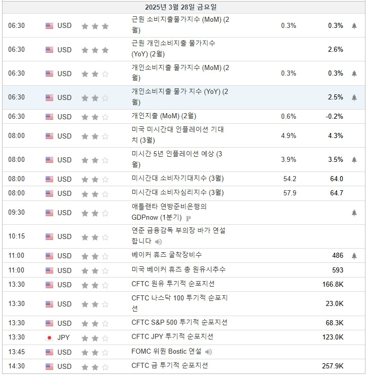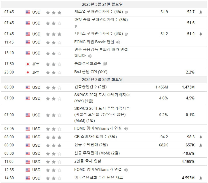 2025년3월24일~28일 미국증시 이벤트