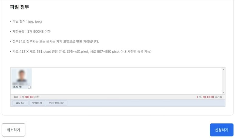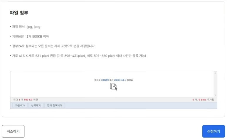 파일을 추가하고 아래에 신청하기 버튼을 클릭합니다.
