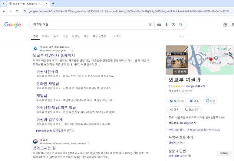 외교부 여권안내 홈페이지를 구글이나 네이버에서 검색하고, 링크된 페이지로 접속합니다.