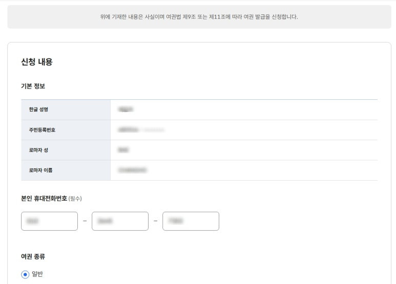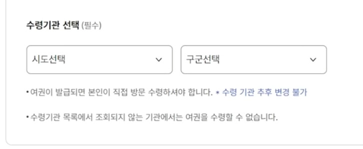 - 약관동의와 여권의 수령 가능 기간도 명시 되어있으니 확인 하세요.