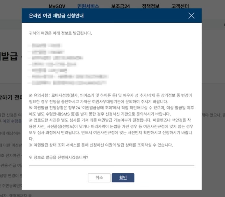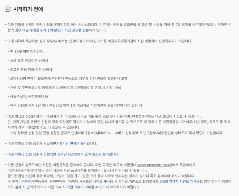 링크로 들어가면, 정부24 의 여권 재발급 온라인 신청 페이지로 들어갑니다.