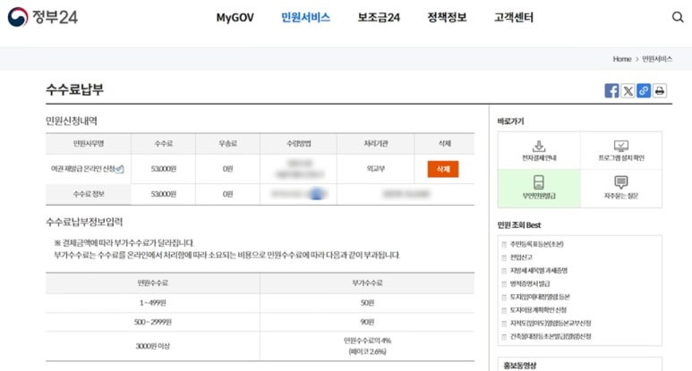 제일 아래로 내려가면, 정부24의 연결 링크가 있습니다.