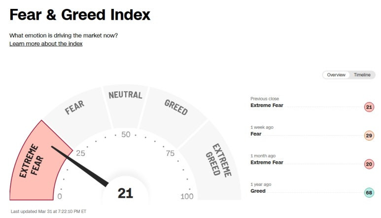 미국 증시 공포 탐욕 지수 (Greed and Fear Index): 21