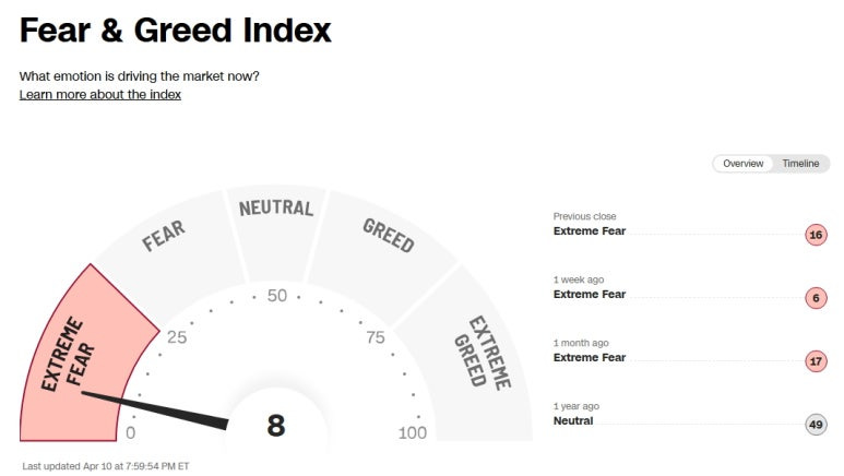 미국 증시 공포 탐욕 지수 (Greed and Fear Index): 8