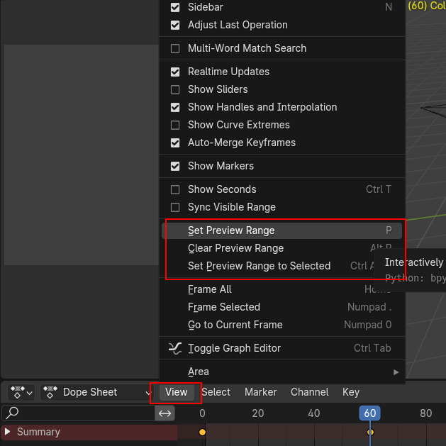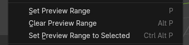 Play의 영역을 설정합니다. 기본은 View / Set Preview Range 명령이고, 단축키는 P 입니다.