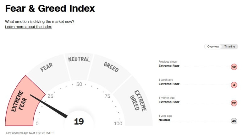 미국 증시 공포 탐욕 지수 (Greed and Fear Index): 19