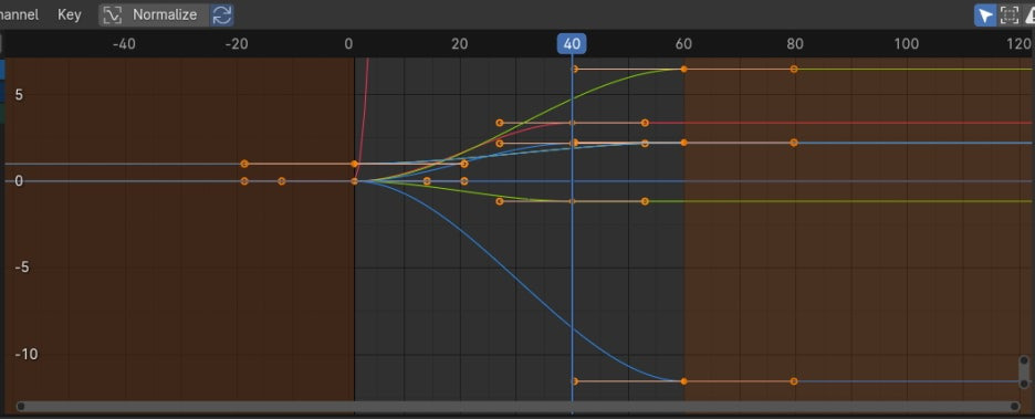 MMB(중간 마우스 버튼)으로 클릭하고 좌우상하 드래그를 하면, Graph Editor의 Work Area 위치를 조절할 수 있습니다.