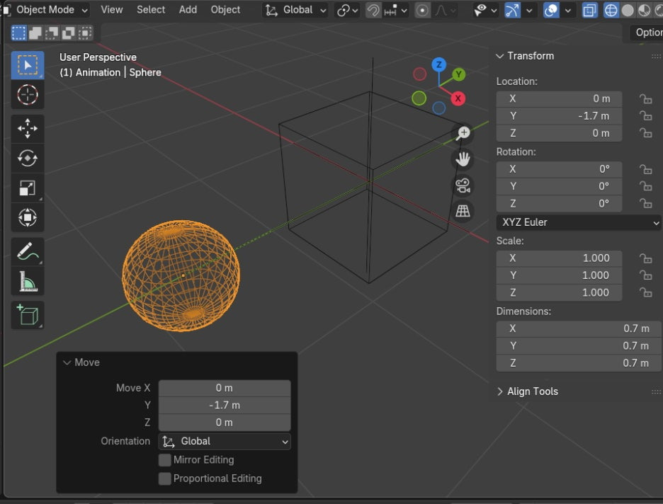 Sphere 의 위치를 Y축의 위치 변경합니다.