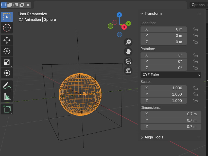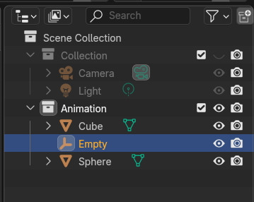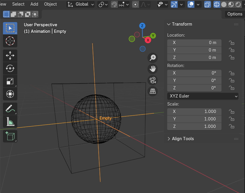 아래와 같이 세팅합니다. Cube와 Sphere그리고 Empty 이렇게 3가지를 준비합니다. 생성할 때 적당한 크기로 합니다.