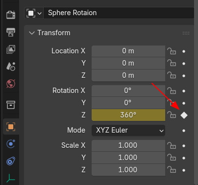 Sphere Rotation의 Z축으로 회전하는 동작, 애니를 할 것이므로, Rotation Z에만 키를 설정하고,