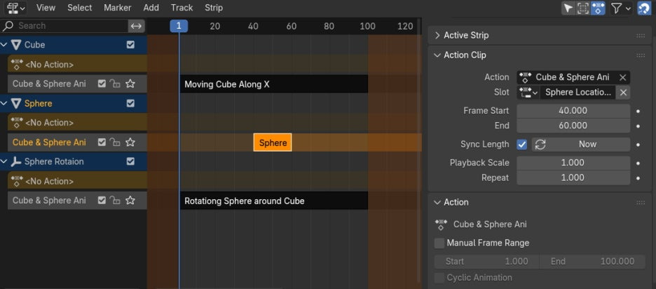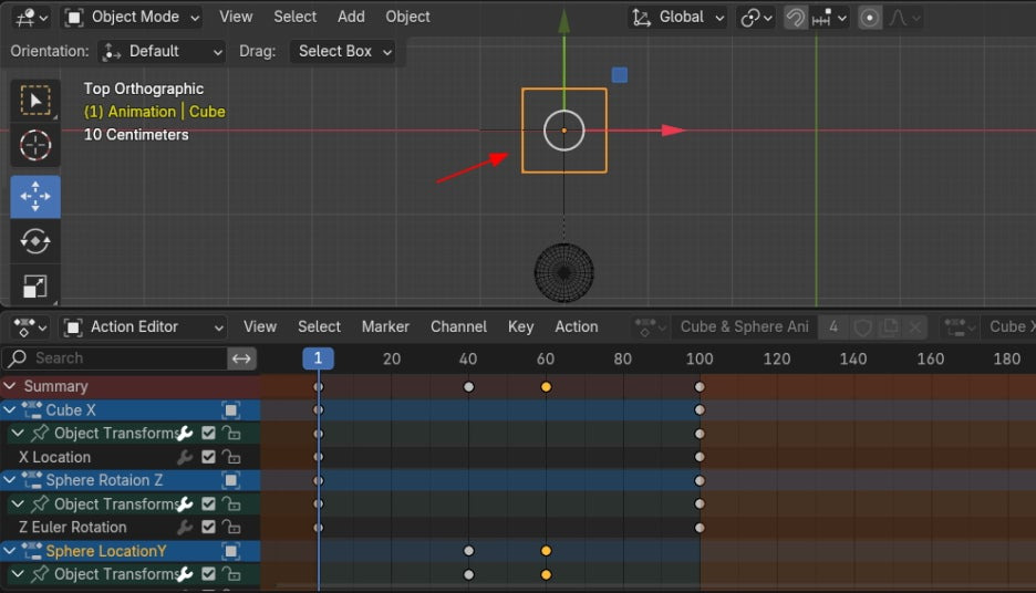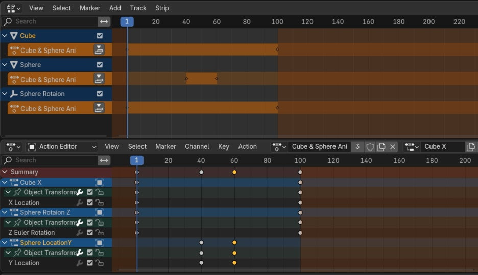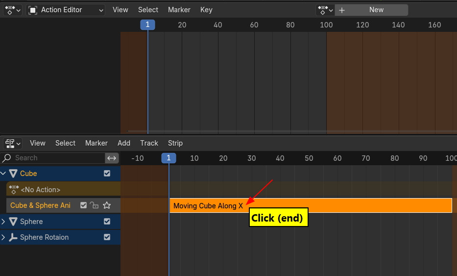 Action Editor에서, Action list에서 Cube & Sphere Ani를 불러오면,