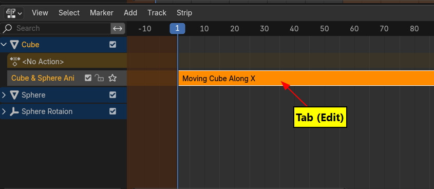 최 상단의 Action track 을 선택하고 (선택하면 활짝 불이 들어옵니다.) 그리고 Tab키를 클릭하면 그 해당 트랙을 Edit 환경이 됩니다.