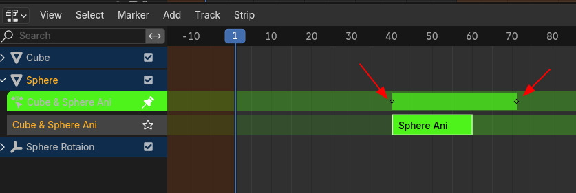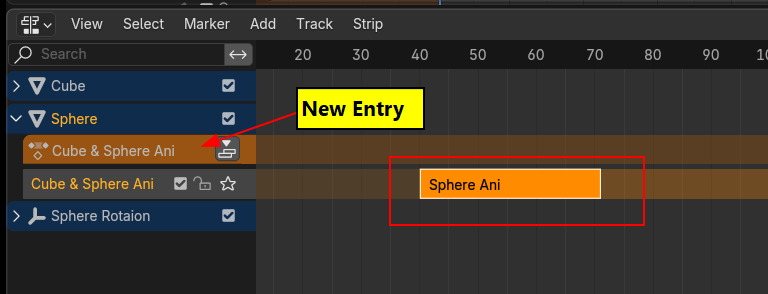그러면, No Action이 갑자기 Action 트랙이 나타나고(New Entry), 변경된 Keyframe의 길이로 표시돕니다.