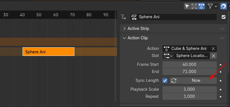 Side bar에 Action Clip에 Sync Length의 Now버튼을 클릭합니다.